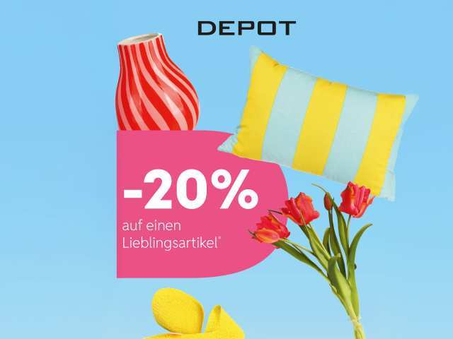 Bei DEPOT hat einfach jeder ein Lieblingsteil. Eines, das man schon ewig im Hinterkopf hat, immer wieder daran vorbeigelaufen ist und es trotzdem nie gekauft hat. Damit ist jetzt Schluss, denn an jedem Samstag im Februar erhalten Sie bei DEPOT in der Galerie Roter Turm 20 % Rabatt auf Ihren Lieblingsartikel*. Kommen Sie vorbei, lassen Sie sich inspirieren und erfüllen Sie sich diesen Wunsch.